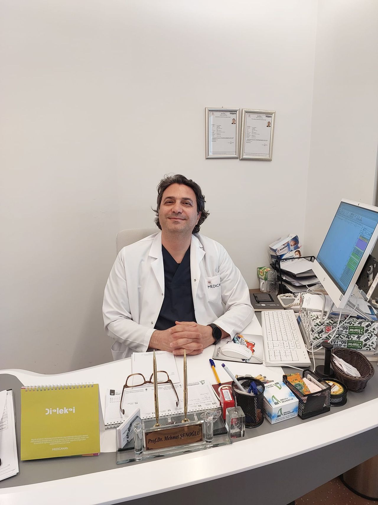 Mehmet Senoglu hocamiza Esimin bel fitigi icin gittik. Bir hafta once baska bir doktor ameliyat dedigi halde muayene ve tetkiklerin incelenmesi sonrasi hocamiz ameliyata gerek olmadigini iyilesme surecinde olan bir hastanin ameliyat olmamasi gerektigini bize cok guzel sekilde anlatti.İyi ki kendisine gittimisiz .Sagolun hocam siz olmasaniz bosu bosuna esim ameliyat olacakti. Cok tesekkur ederiz
